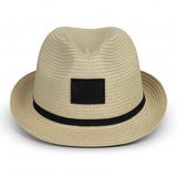 Classic paper weave fedora hat with a coloured polyester ribbon which features a patch for convenient and prominent branding.